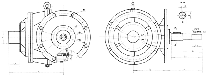 型號 L Ll L2 L3 L4 L5 L6 d ¢A ¢B ¢C ¢D ¢H E F G M N 重量 E×T