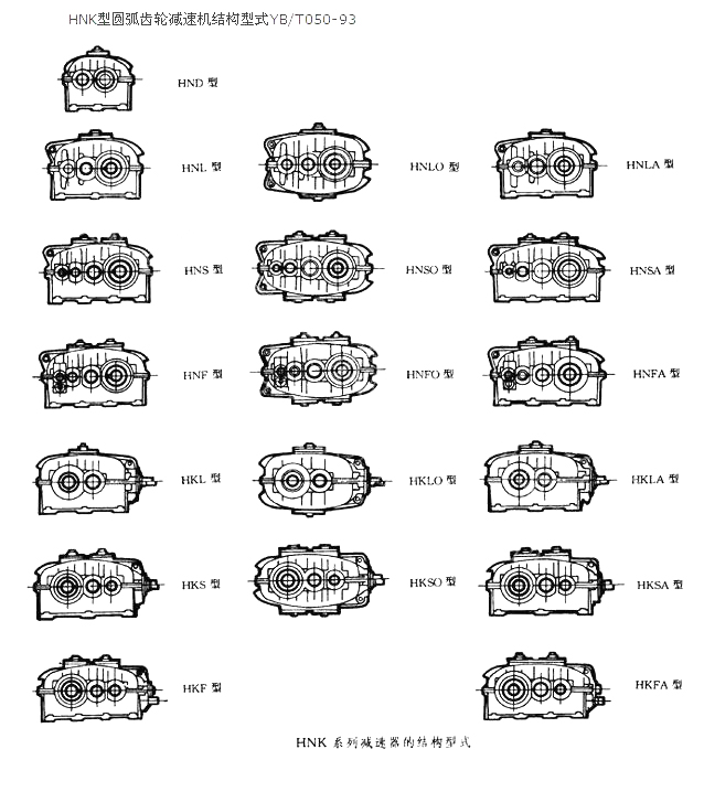 HNK系列減速器齒輪采用GB12759——91雙圓弧圓柱齒輪基本齒廓,齒輪采用優質中碳合金鋼,調質,中硬齒面。本系列減速器與相同材料、規格、精度、相同熱處理條件的漸開線齒輪減速器相比,具有承載能力高、壽命長等優點;與石蠟齒面減速器相比,具有工藝簡單、制造成本低的優勢。減速器的輸入軸轉速一般不大于1500r/min,工作環境溫度為—40~50℃。 HNK系列圓弧齒輪通用減速器廣泛用于礦山、軋鋼、石油、化工、運輸=水泥等工業生產設備中。