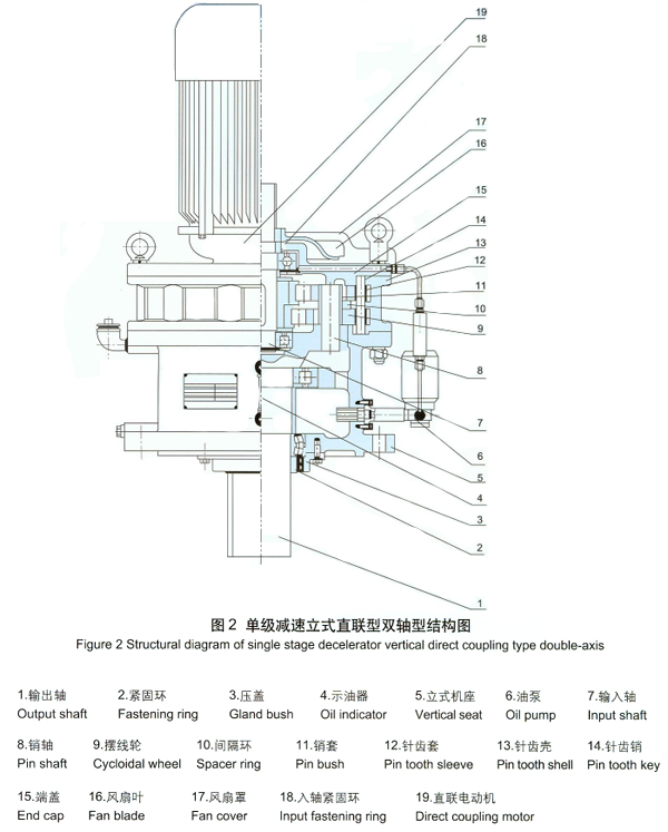 TBLY擺線針輪減速機為專用異步電機直聯(lián)型、法蘭式立式安裝
