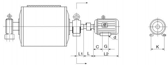 配套動力采用Y系列標準電機,如選用YB系列隔爆型電機,則可應(yīng)用于隔爆要求的場臺,因此外置式電動滾筒各種型號均可派生成隔爆型。