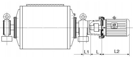 注:圖中Ll值為輸入支座中心到輸入軸軸伸肩胛的尺寸,如為WⅡ式直聯(lián)接軸型外置式電動滾筒時則為輸入支座中心到電機法蘭端面的參考尺寸。