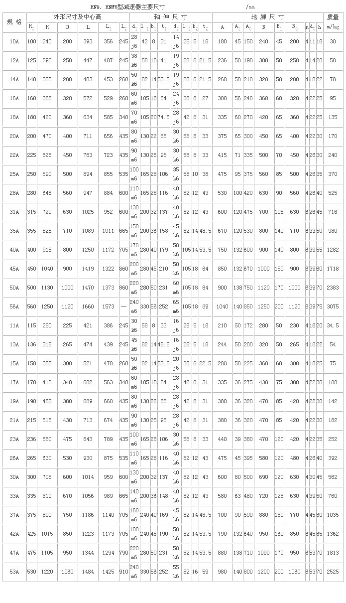H型星輪減速器(JB/T 8712—1998)代替原混合少齒差星輪減速器(ZBJ 19006—1988)屬少齒差漸開線行星齒輪傳動,具有體積小,承載能力高,傳動比寬、密,效率高,壽命長,傳動平穩,允許高速輸入等特點。采用單元化結構,以行星齒輪、內齒輪、滾動星輪、偏心套和行星架組合的主要單元,代號H;用擴大傳動比的附加單元代號N;用來改變輸入方向的附加單元代號Z。同一種機座號可采用4種承載能力單元結構,因而在產品型號后面附注A、B、C、D4個承載能力代號,即輕型、中型、重型、超重型。適用于冶金、礦山、電力 、起重、運輸、橡膠、水泥、造紙、制糖、鍋爐、建筑等領域,為通用型減速器。